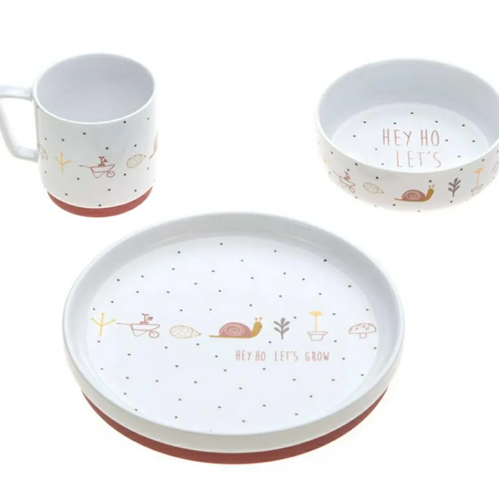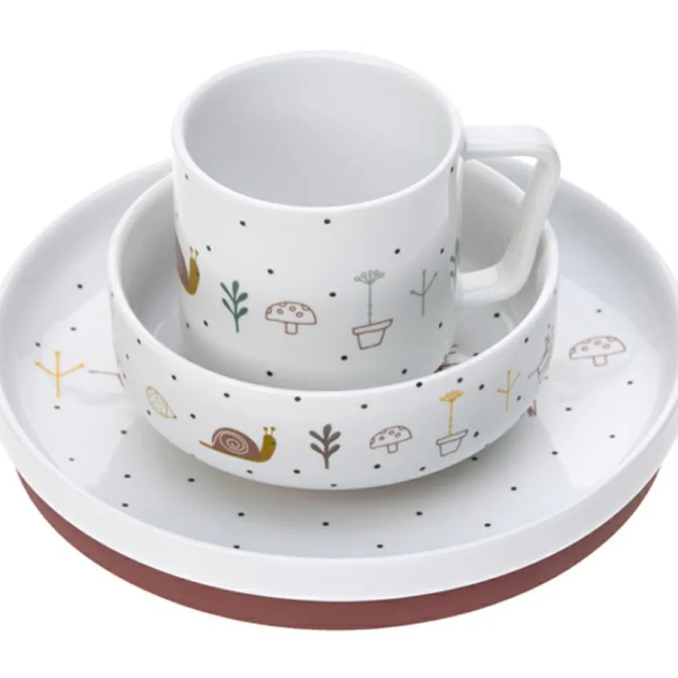 Le coffret repas en porcelaine rose Garden Explorer de la marque Lässig enchantera les repas de bébé. Il fera un cadeau idéal pour apprendre à votre enfant à manger comme un grand.