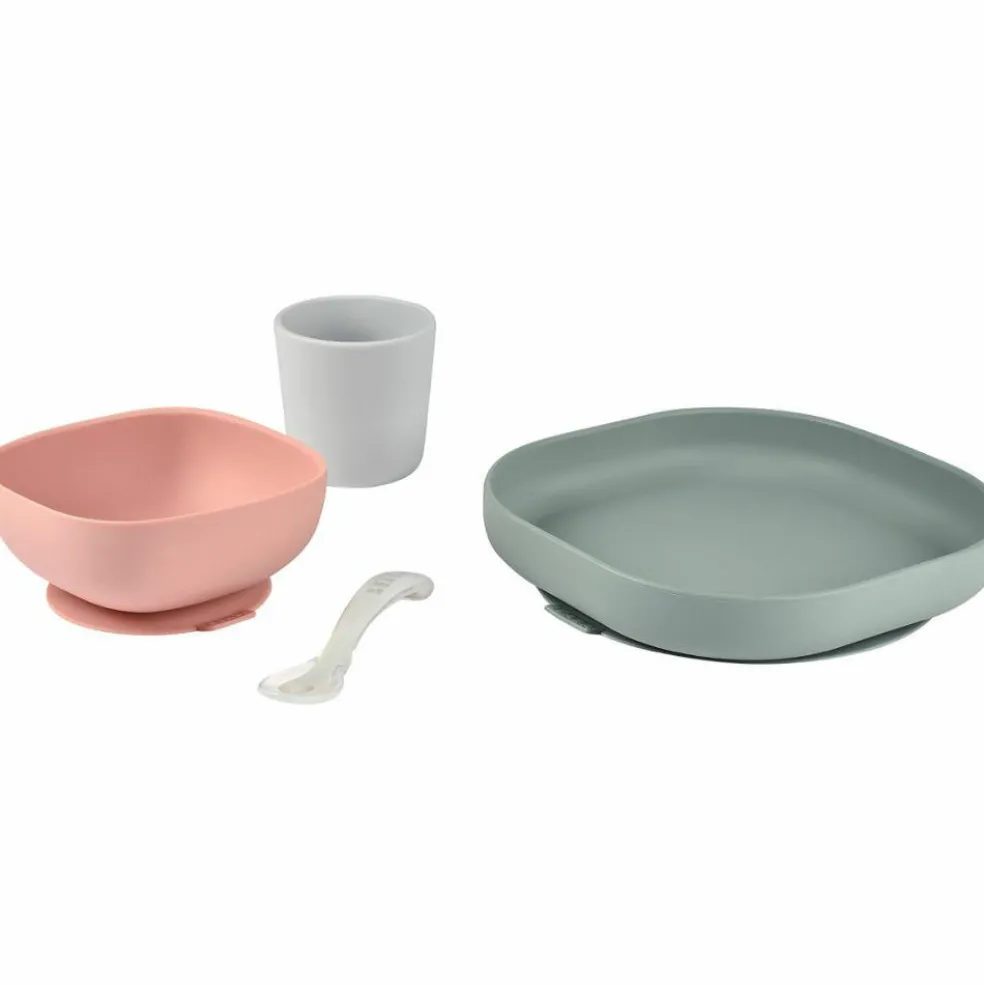 Le coffret repas en silicone eucalyptus de la marque Béaba accompagne bébé lors de ses premiers repas. C’est un ensemble facile à manier pour les petites mains qui fera du repas un moment de plaisir !