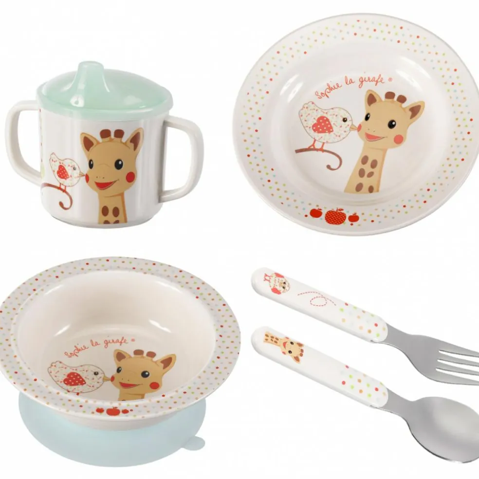 Le coffret repas Kiwi de Sophie la girafe comporte :
