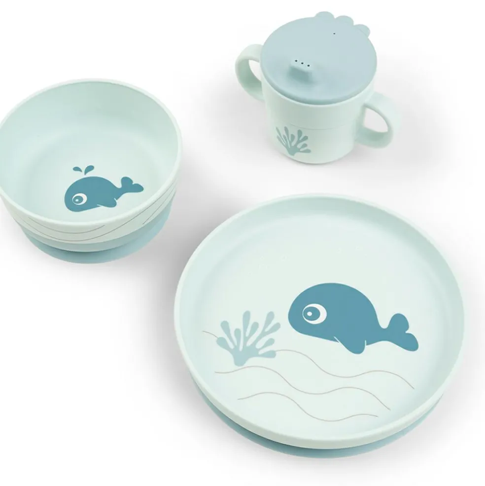 – Comprend 1 assiette, 1 bol et 1 tasse.