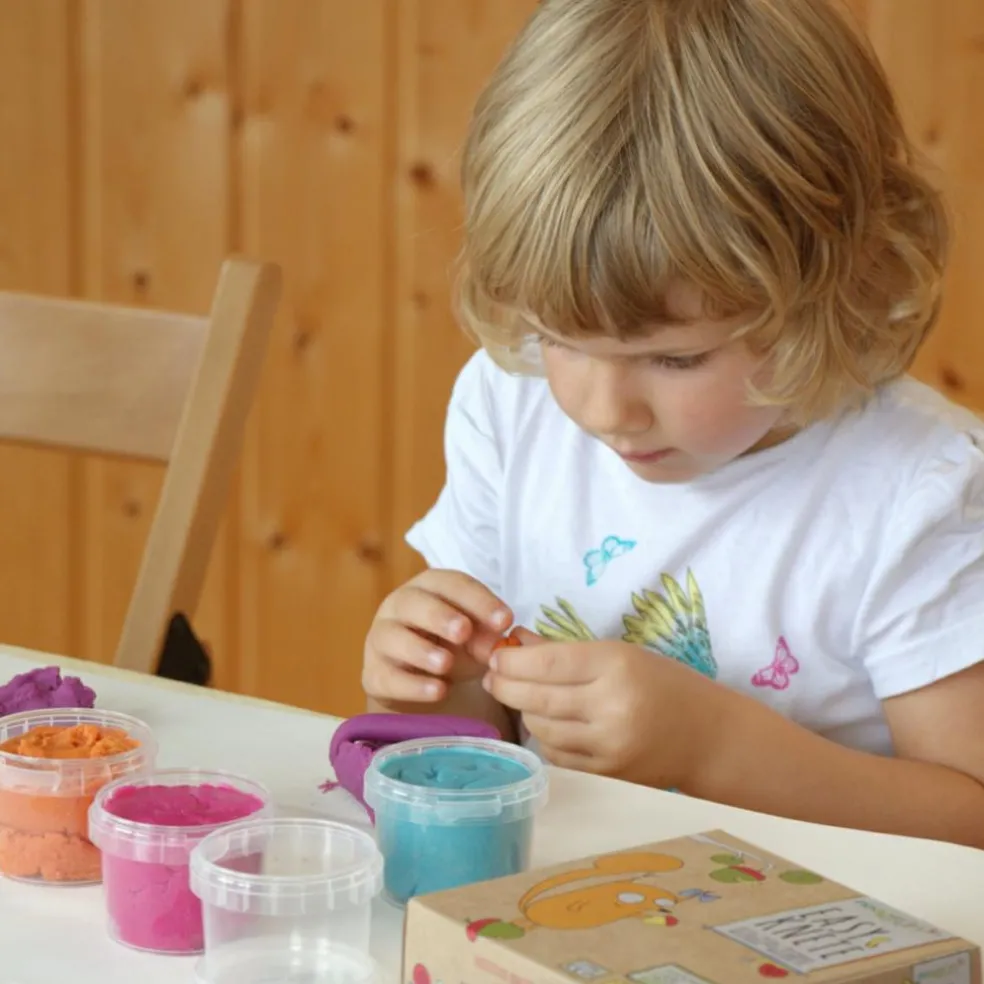 – Coffret de pâte à modeler entièrement naturelle pour laisser s’exprimer leur créativité.