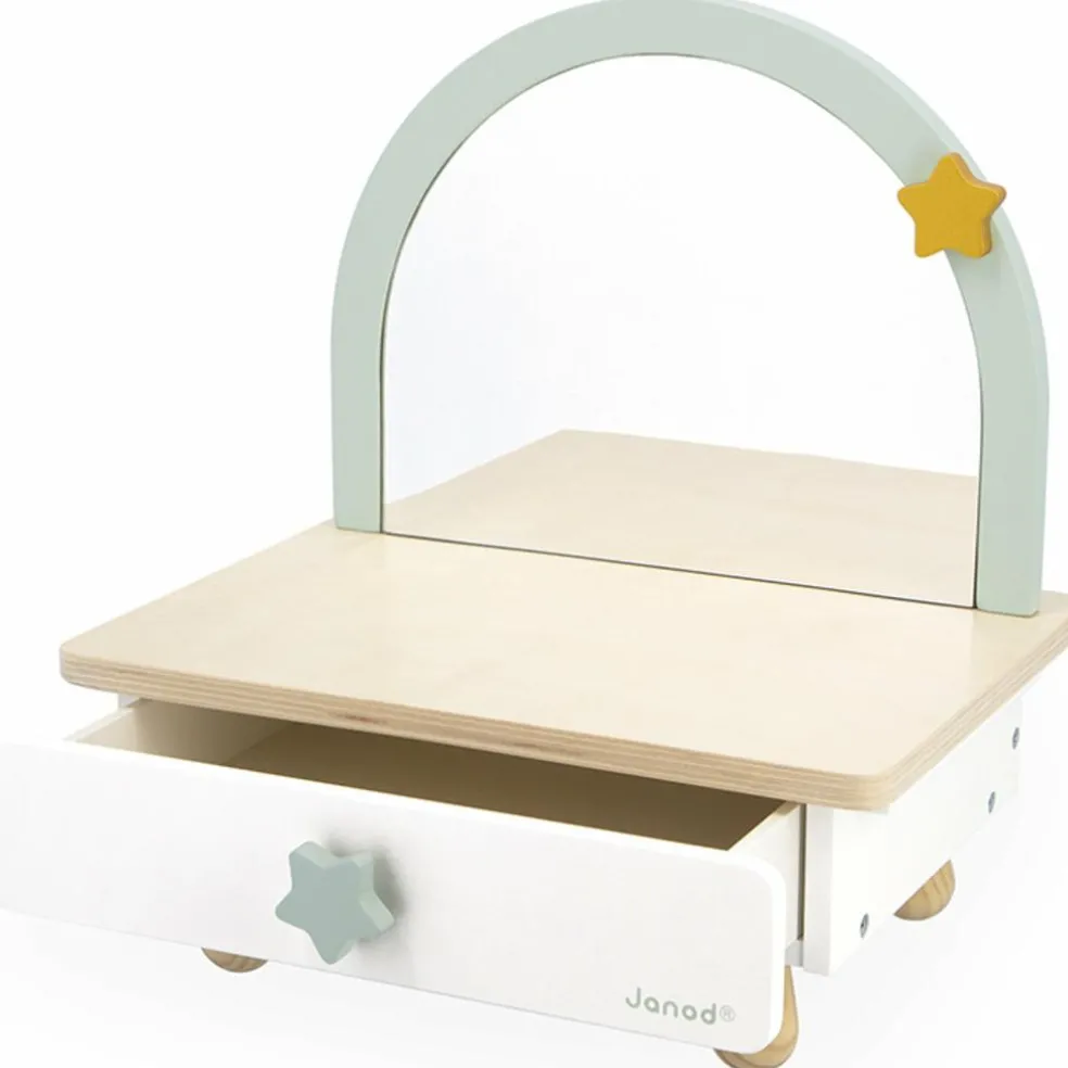 Un univers doux et poétique : Fabriquée en bois certifié FSC™, cette coiffeuse reflète l’engagement de Janod pour une fabrication responsable et durable. Les couleurs intemporelles et les motifs enchanteurs séduiront les petits rêveurs et rêveuses dès 3 ans.
