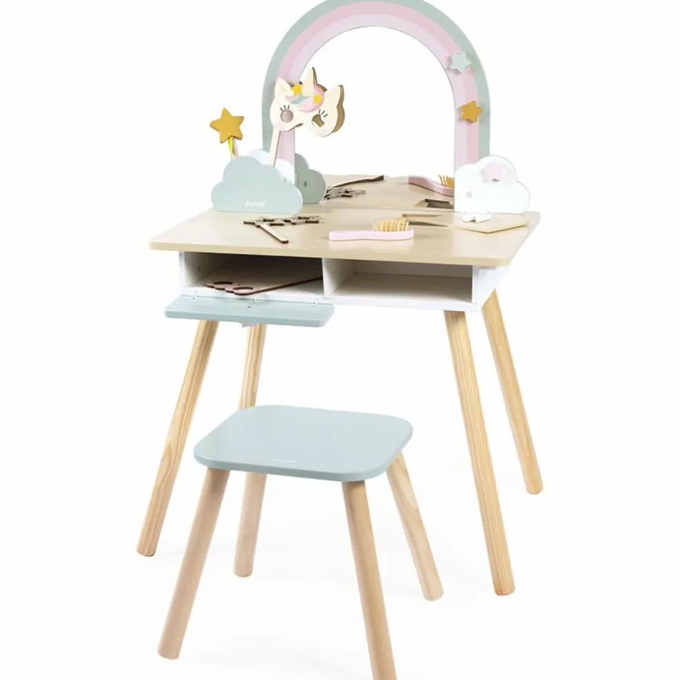 Une touche de magie pour bien commencer la journée avec la Coiffeuse en bois Licorne de Janod !
