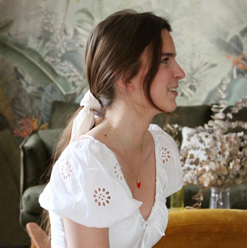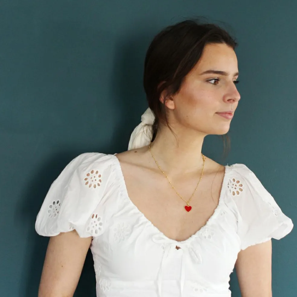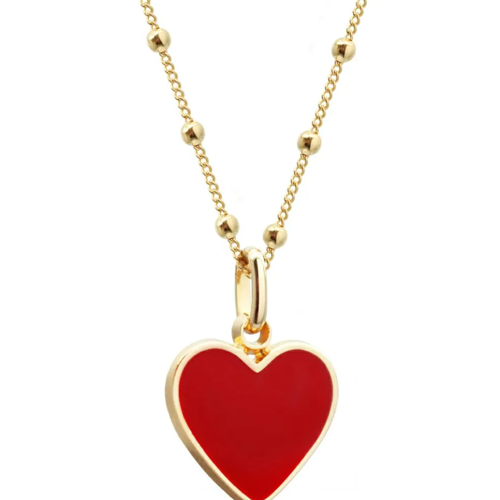 – Matière du cœur : Plaqué or 18 carats et laque rouge.