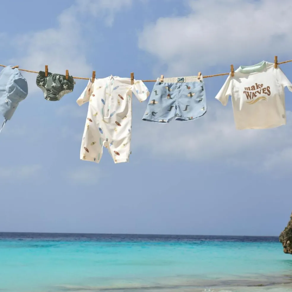 – Avis aux petits surfeurs ! En combinaison à manches courtes avec un indice de protection UV 60, plus rien n’empêche la prochaine baignade.