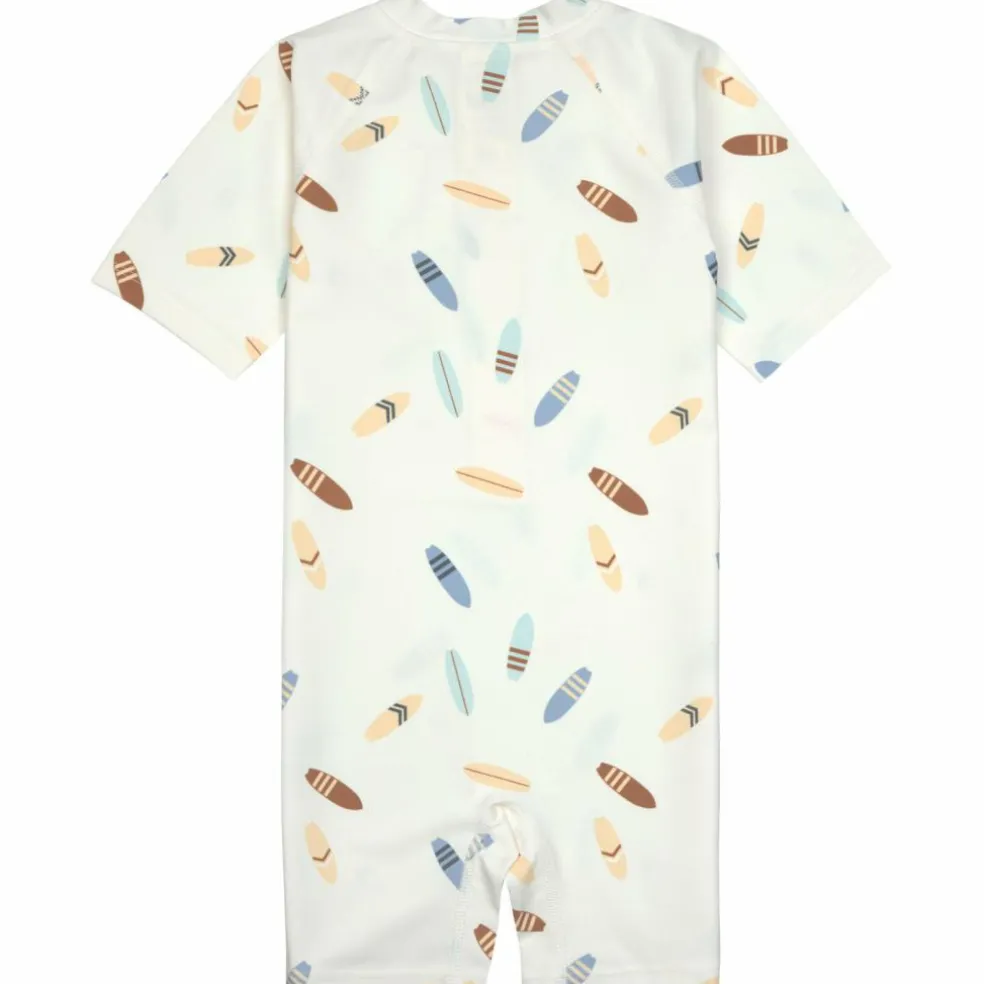 – Avis aux petits surfeurs ! En combinaison à manches courtes avec un indice de protection UV 60, plus rien n’empêche la prochaine baignade.