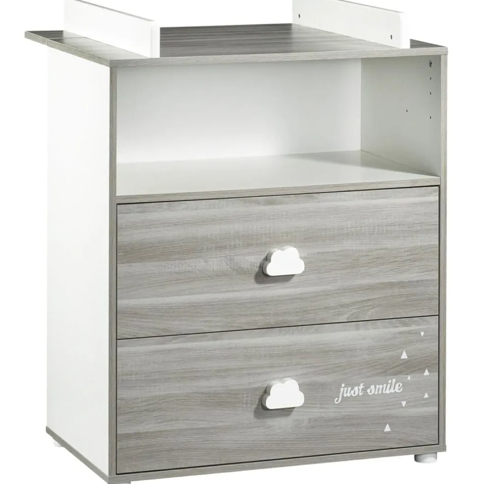 La commode à langer Smile chêne silex de la marque Baby Price offre un grand espace de rangement et vous permet de changer bébé en toute sérénité. Lorsqu’il est propre, vous pouvez tout simplement retirer le dispositif à langer amovible et conserver la commode pour ses vêtements.
