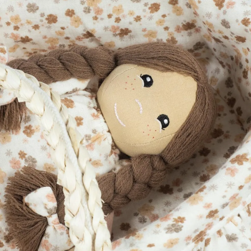 – Couffin Somerset en osier avec impression de fleurs multicolores et poignées pour transporter les poupées.