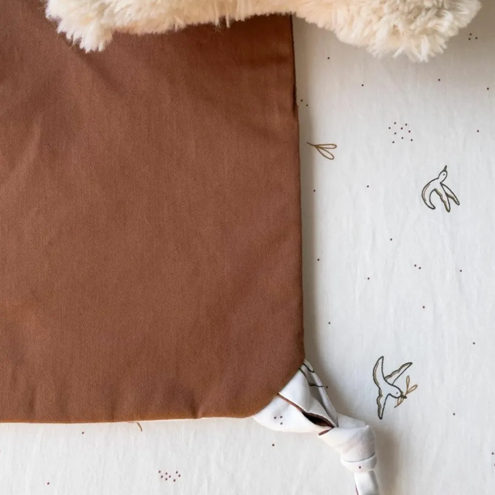 Conçu en satin 100% coton bio et garni de polyester recyclé, ce doudou tout doux a été pensé pour choyer la peau sensible des tout-petits. Sans substances nocives, il respecte l’environnement comme la santé de votre enfant.