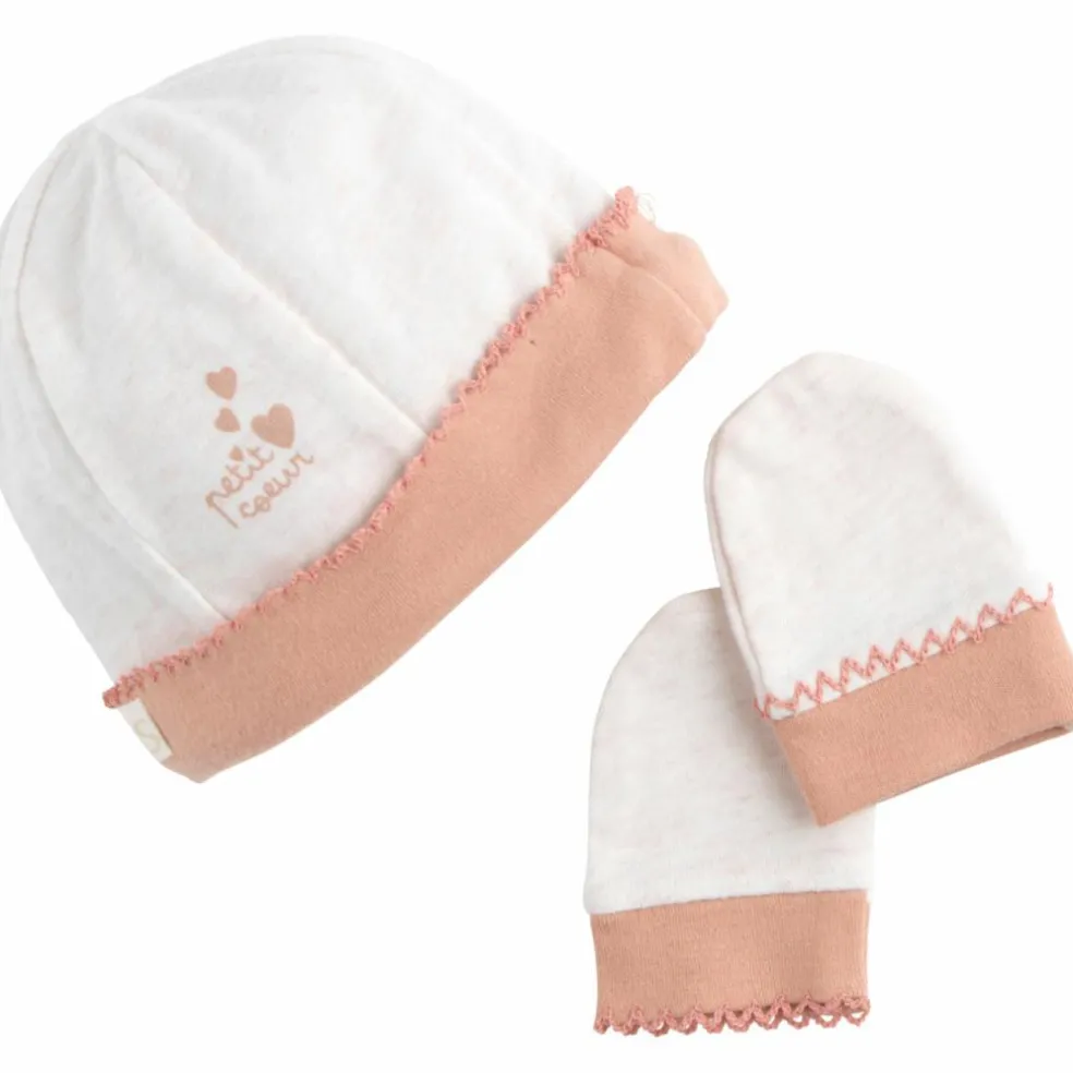 Dès ses premières heures, bébé mérite ce qu’il y a de plus délicat. Ce duo bonnet et moufles en jersey 100 % coton est pensé pour entourer votre nouveau-né de confort, tout en ajoutant une touche de raffinement à ses premiers clichés. Dans un beige chiné doux associé à un vieux rose tendre, cet ensemble allie tendance et tendresse.