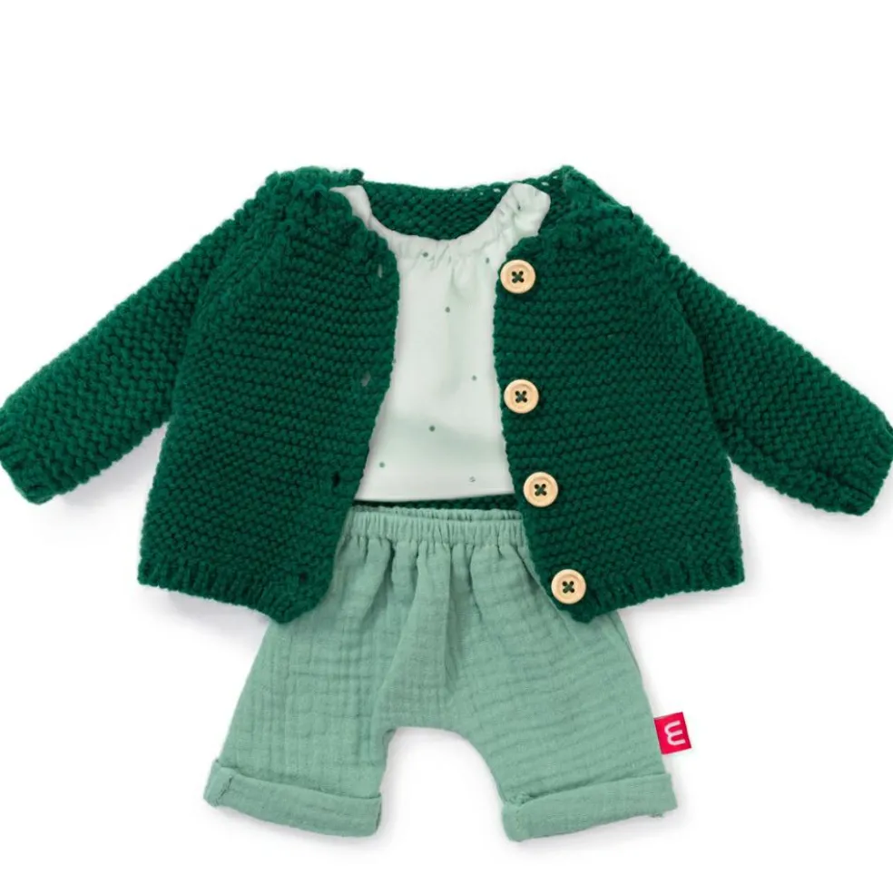 – Ensemble de vêtements vert pour poupée de 38 cm.