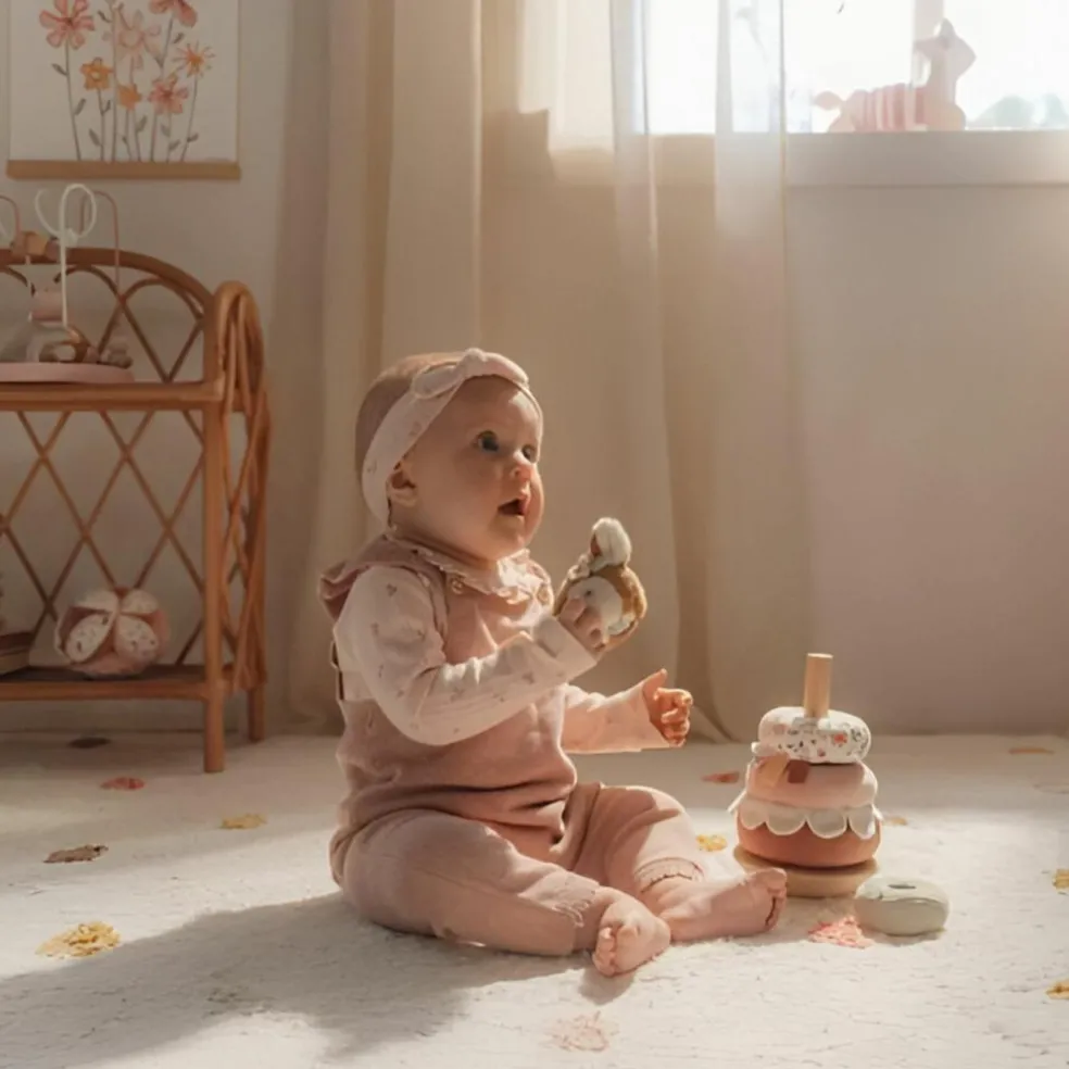 Un compagnon d’éveil tendre et durable : Le faon à empiler Fairy Garden de Little Dutch accompagne bébé dès ses premiers jeux, avec