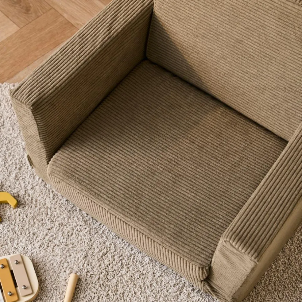 Avec le fauteuil pliable vert de Kid’s Concept, les petits peuvent enfin profiter d’un meuble à leur taille, pensé pour leur confort et leur autonomie. À la fois fauteuil moelleux et matelas improvisé, ce modèle ingénieux accompagne les enfants dans tous leurs moments de détente : un dessin animé, une lecture passionnante, ou une petite sieste bien méritée après une journée bien remplie.