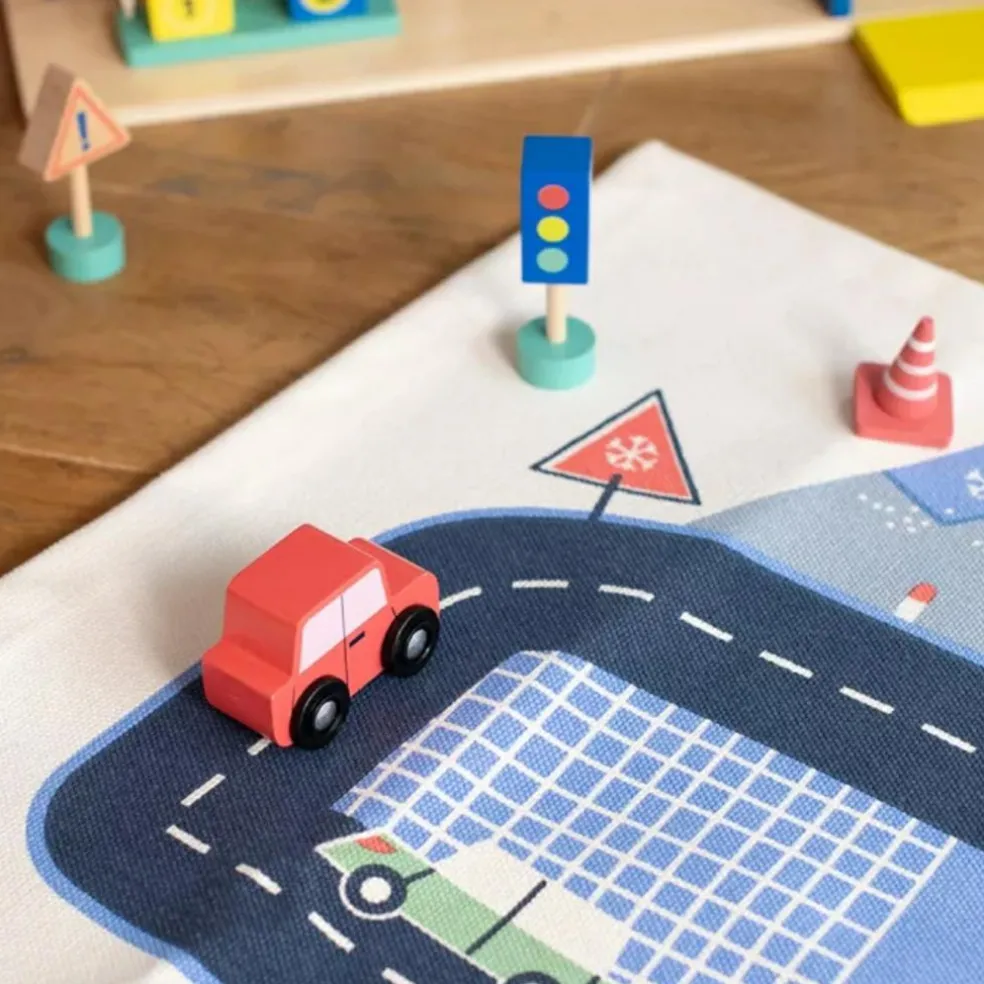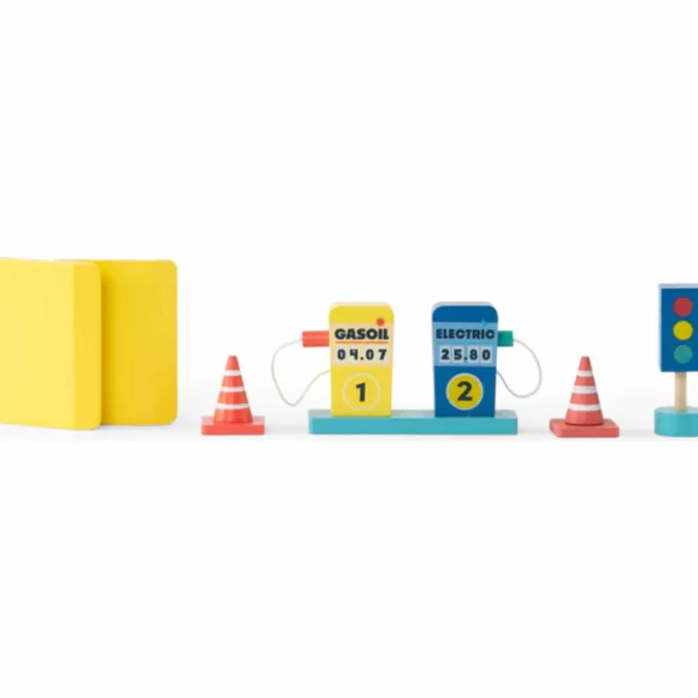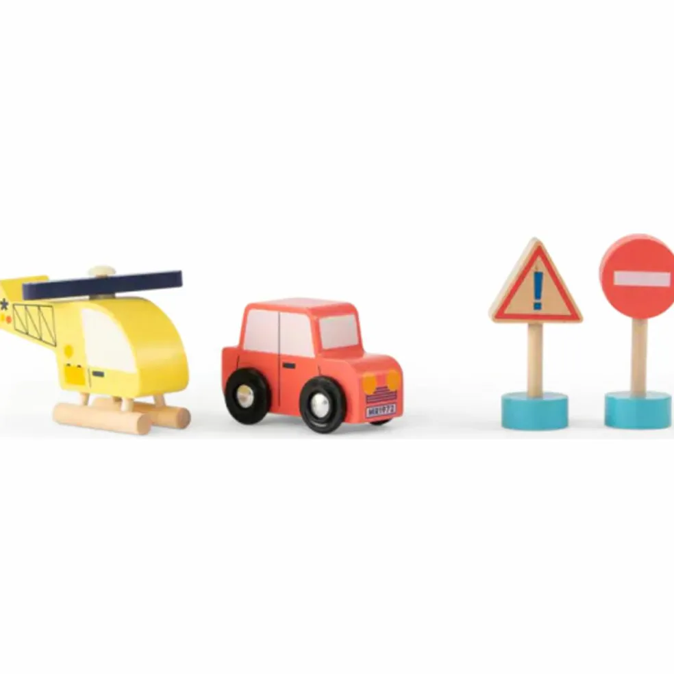 – Des accessoires inclus : 1 voiture, 1 hélicoptère, panneaux et cônes pour enrichir l’expérience.