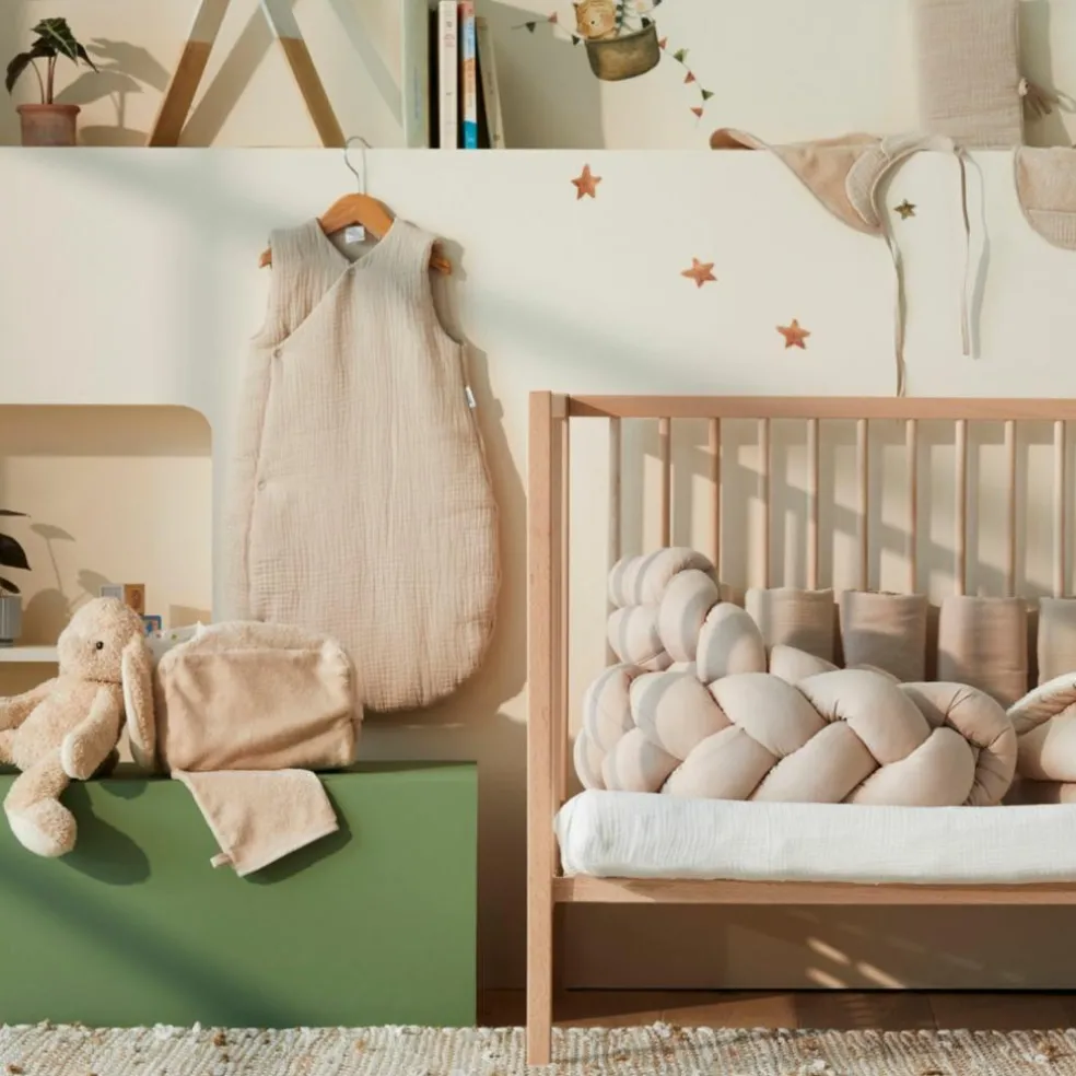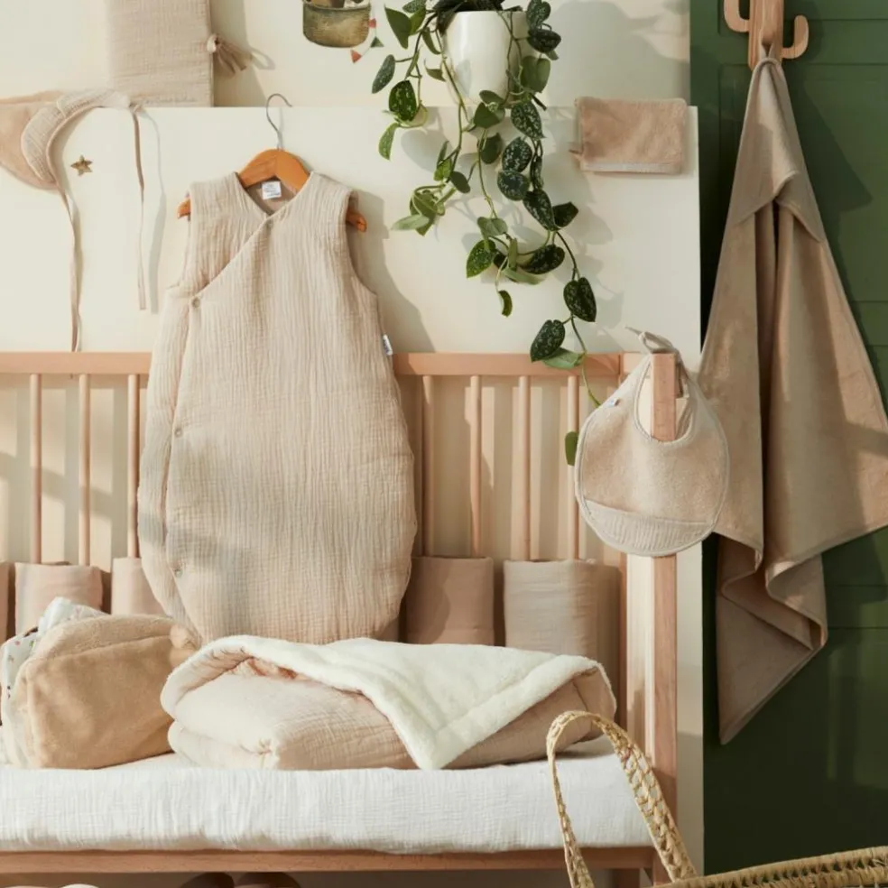 – Pour les mois les plus doux, voilà une gigoteuse légère (non ouatinée) fabriquée en double gaze de coton, une matière à la fois douce, absorbante et respirante.