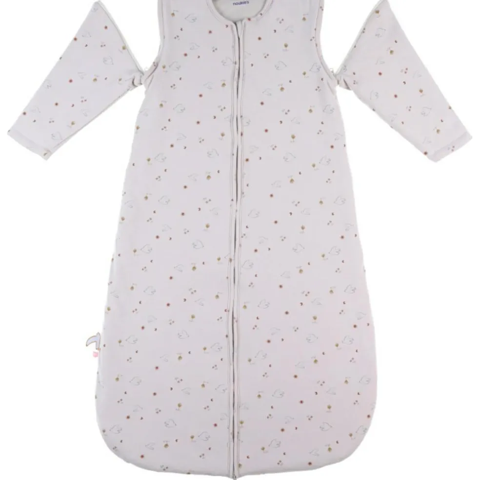 – La gigoteuse 100 cm ornée de l’imprimé jersey Colombes du Bonheur, avec ses manches amovibles, est idéale pour votre bébé.