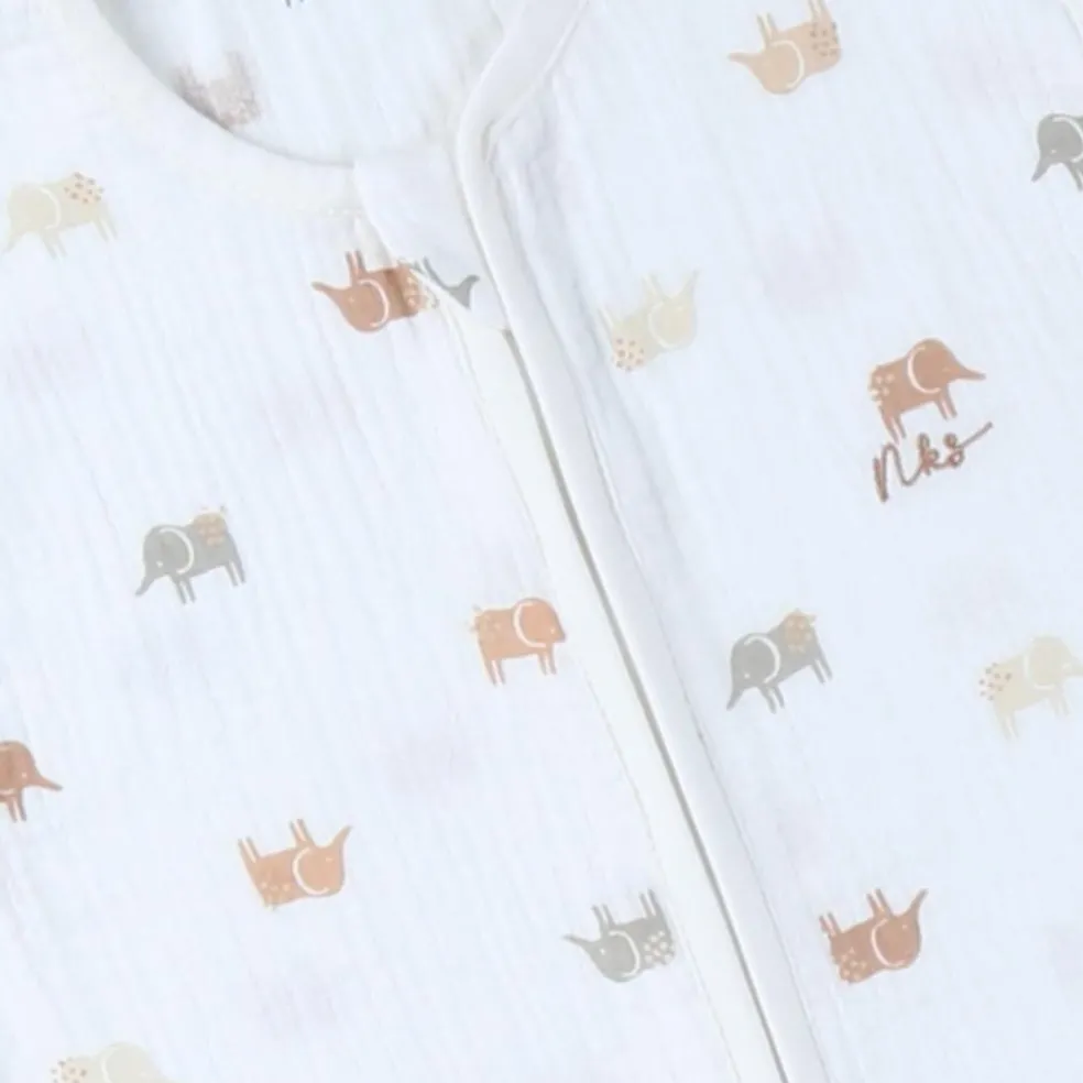 – La gigoteuse 100 cm couleur blanche à imprimé éléphant promet de doux dodos à bébé.