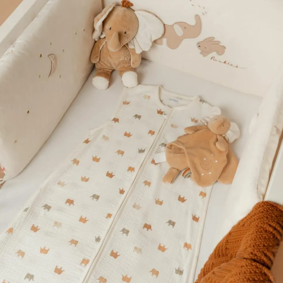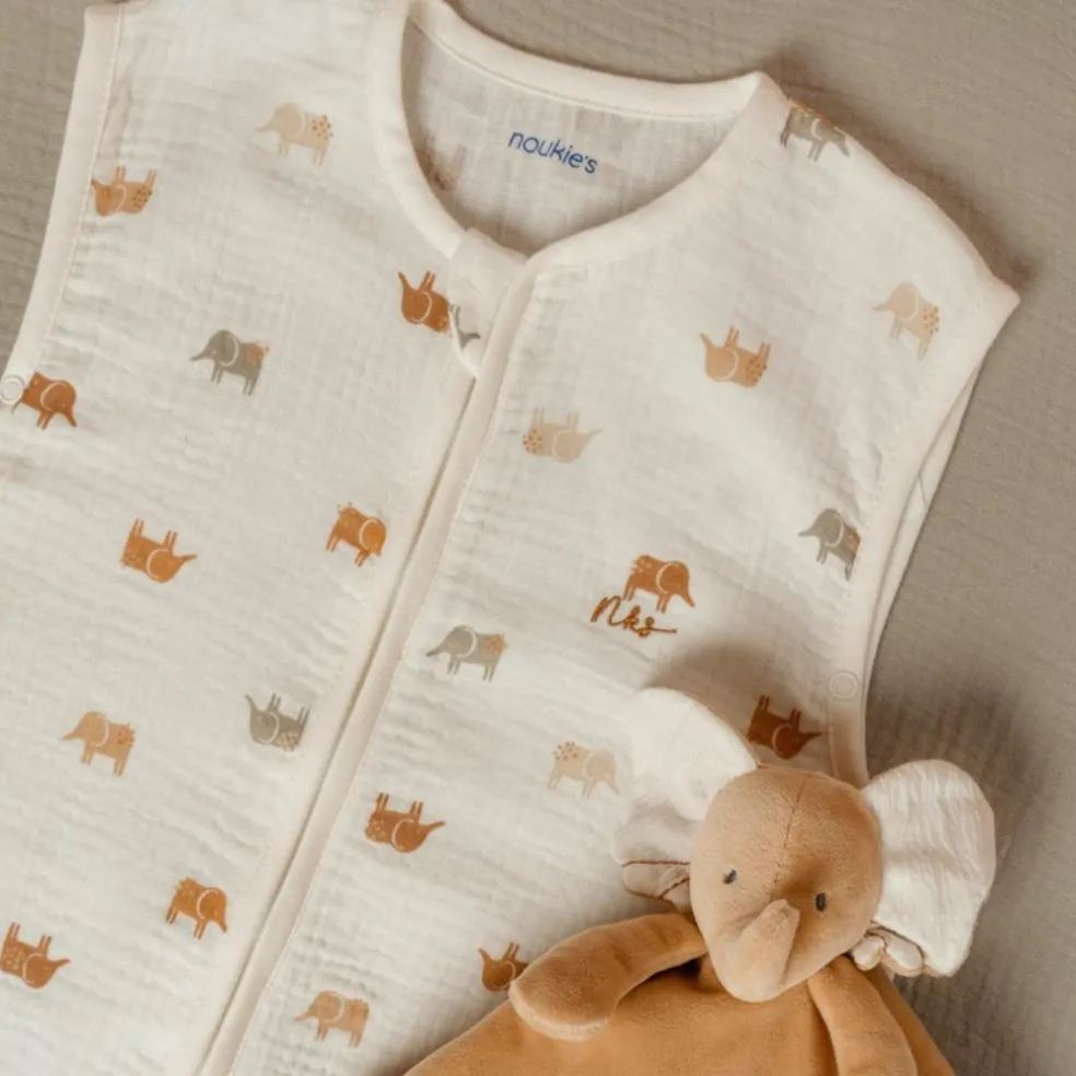 Offrez à votre nouveau-né des nuits douces et aérées avec la gigoteuse en mousseline TOG < 1.0 de Noukie’s, parfaite pour les premières semaines de vie !