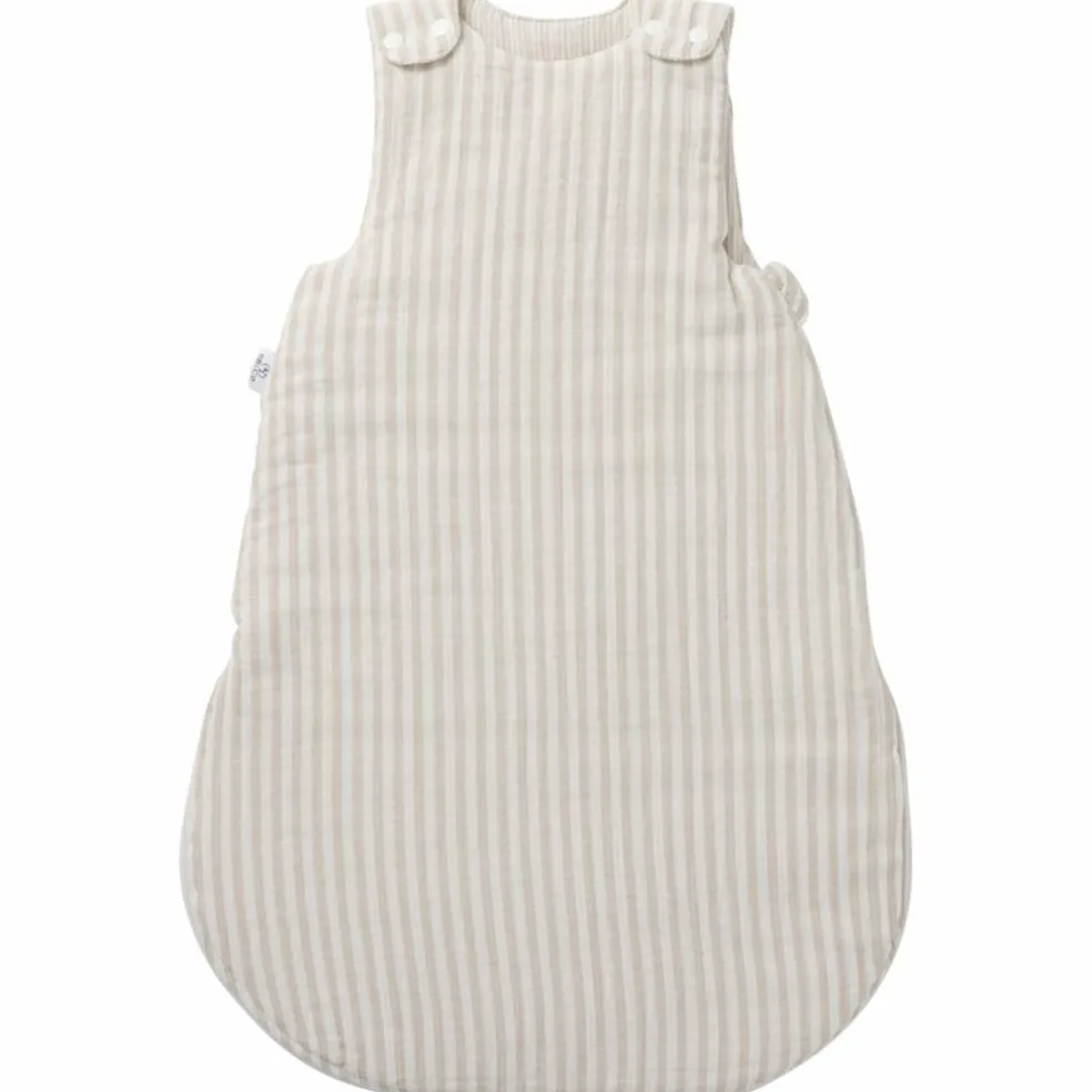 – Une gigoteuse entièrement doublée et ouatinée en gaze de coton rayé.