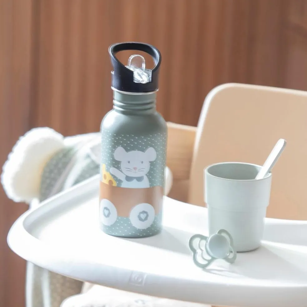 – Design enfantin et joyeux : Motif de souris sur fond vert à pois, doux et amusant, pour donner envie aux enfants de boire.
