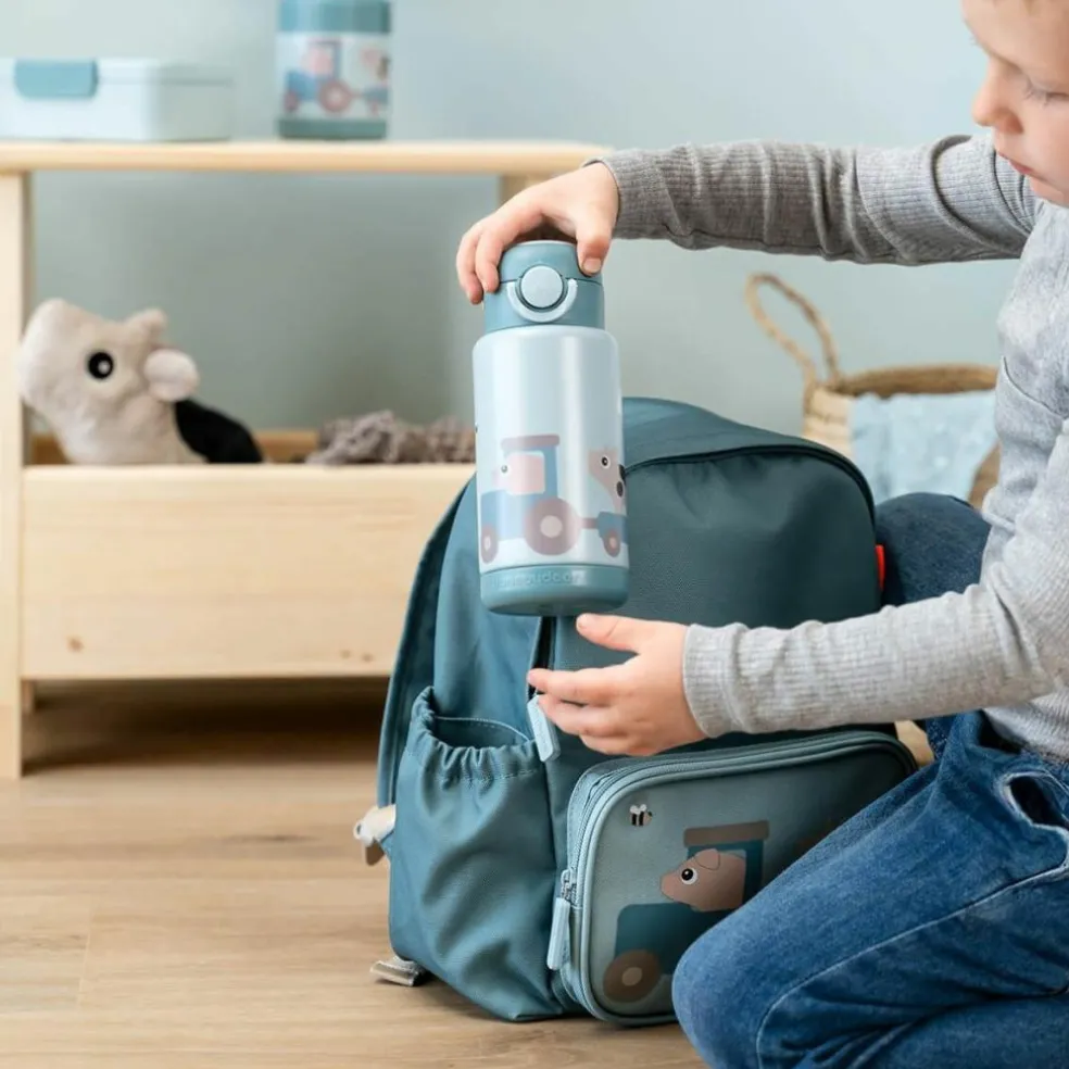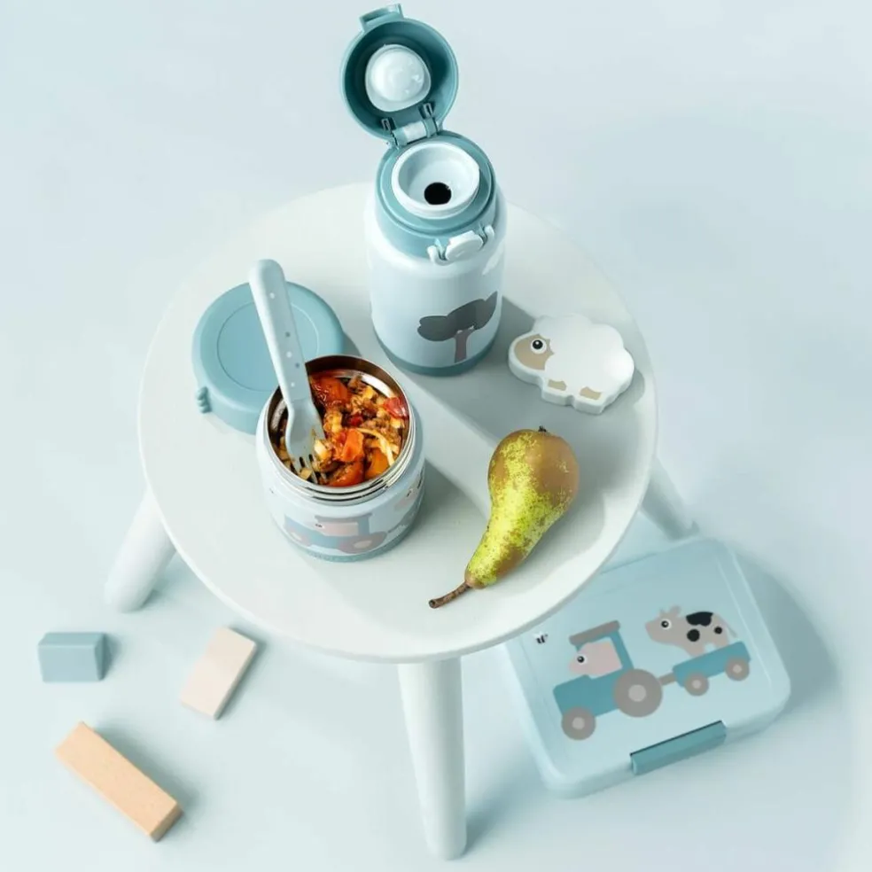 Emmenez un petit bout de la ferme partout avec vous grâce à la gourde isotherme Tiny Farm Bleu de Done by Deer, l’alliée parfaite pour toutes les escapades de votre enfant !