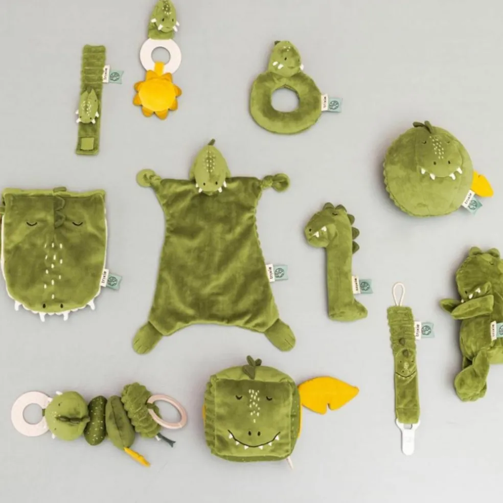 Ce hochet allongé Trixie est une jolie idée de cadeau de naissance alliant douceur, amusement et durabilité. Bébé y trouvera un ami réconfortant, à câliner et à secouer à volonté !