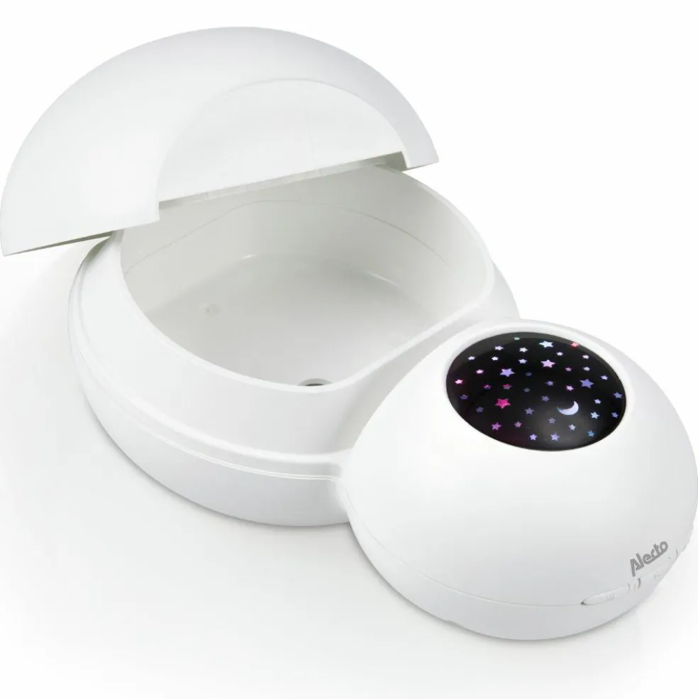 Les bébés et les jeunes enfants dorment beaucoup et pas seulement pour se reposer. Pendant leur sommeil, ils traitent d’innombrables nouvelles informations qui participent à leur développement. Il est donc très important qu’ils dorment et rêvent tranquillement. Cet humidificateur avec projecteur aide à cela. Vous projetez le ciel étoilé au plafond, au-dessus du lit / berceau de votre petit pour qu’il s’endorme paisiblement avec une douce image en tête. Assurez-vous de remplir le réservoir d’eau de l’humidificateur pour conserver une bonne qualité de l’air jusqu’à huit heures. Vous pouvez également y ajouter quelques gouttes d’un agréable parfum qui se diffusera subtilement dans la pièce. Le réservoir d’eau convient aux pièces jusqu’à 20 m2. Lorsque le réservoir est vide, l’appareil s’éteint automatiquement.