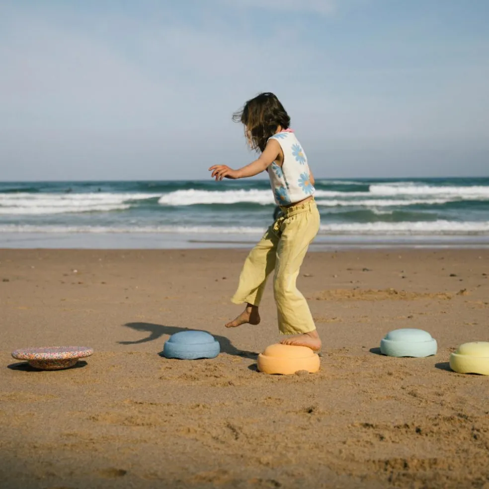 Les six couleurs pastel de Stapelstein Originals sont complétées par le Stapelstein Board super confetti pastel, qui convient particulièrement bien aux jeux d’équilibre et aux exercices d’équilibre. Danse sur l’arc-en-ciel pastel et apporte de la légèreté dans ta vie.