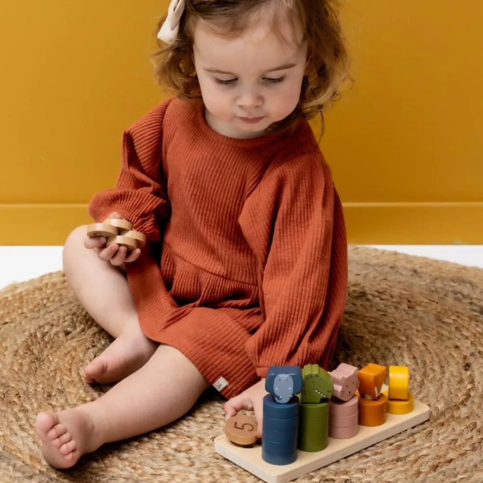 Un puzzle éducatif et ludique ! Avec ce jouet à encastrer 2 en 1 en bois Trixie, les enfants apprennent à compter tout en s’amusant avec leurs animaux préférés. Chaque chiffre de 1 à 5 est associé à un animal et à des arcs colorés à empiler, permettant de développer à la fois la motricité fine et la logique. Un jeu parfait pour accompagner les premiers apprentissages de façon amusante et intuitive.