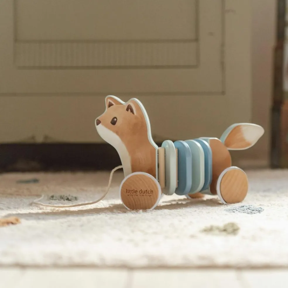 – Fabriqué en bois et orné d’anneaux colorés, ce renard à tirer offre non seulement un divertissement sans fin, mais favorise également la marche et le développement de la motricité.