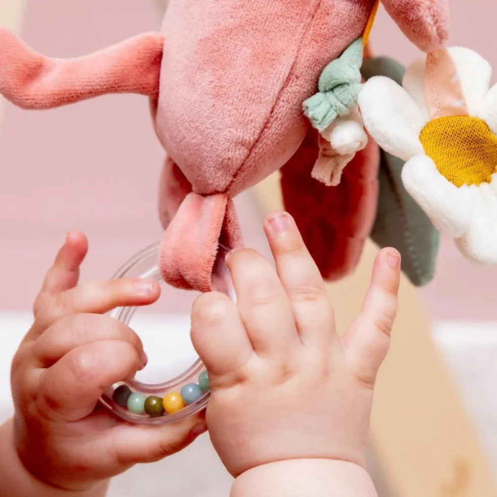 – Un jouet pratique et nomade : se fixe facilement sur une poussette, un cosy ou un parc pour divertir bébé en toute circonstance.