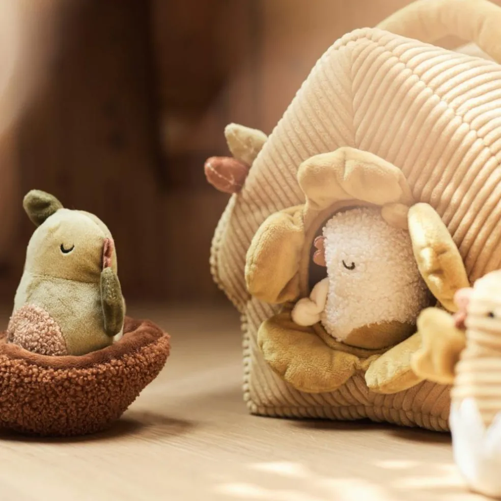 – Contenu : 1 maisonnette + 3 oiseaux en tissu (Lulu, Chirp, Feather).