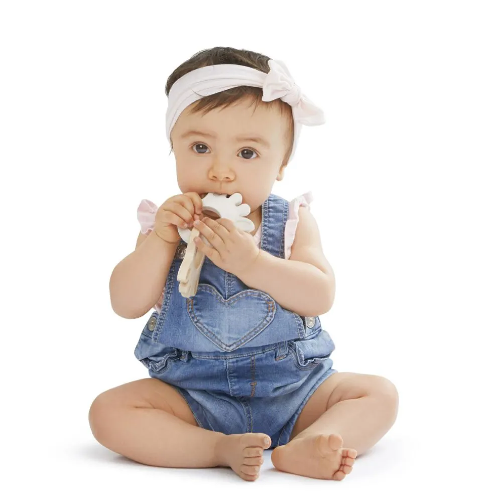 Le jouet de dentition anneaux silhouette Rubber & Wood de la marque Sophie la girafe permet de soulager les gencives douloureuses de bébé lorsqu’il fait ses dents.