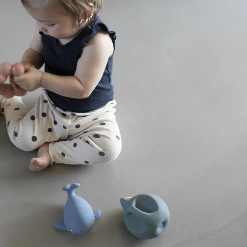 Offrez un moment de tendresse et de soulagement avec Christian la baleine, le jouet de dentition en caoutchouc naturel signé Filibabba.