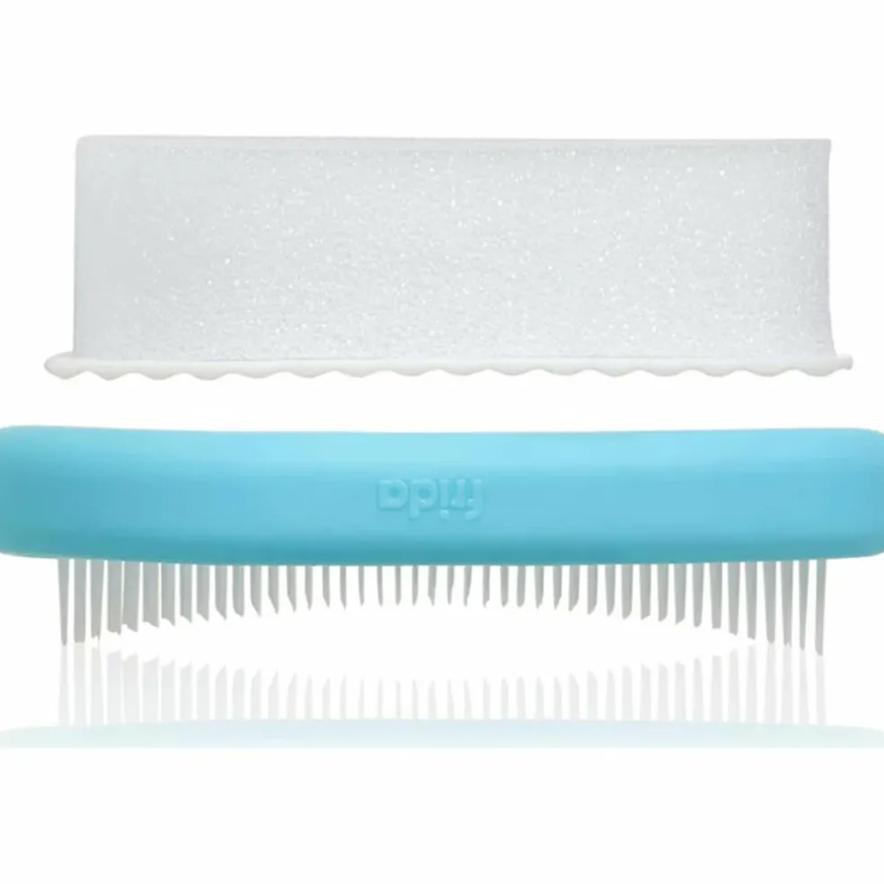 – 1 éponge double face + brosse, 1 peigne, 1 support de rangement inclus.