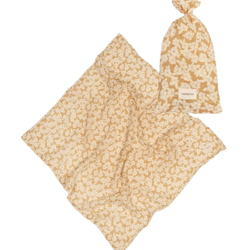 – Le lange en double gaze de coton bio Wabi-Sabi est parfait pour l’emmaillotage de naissance.