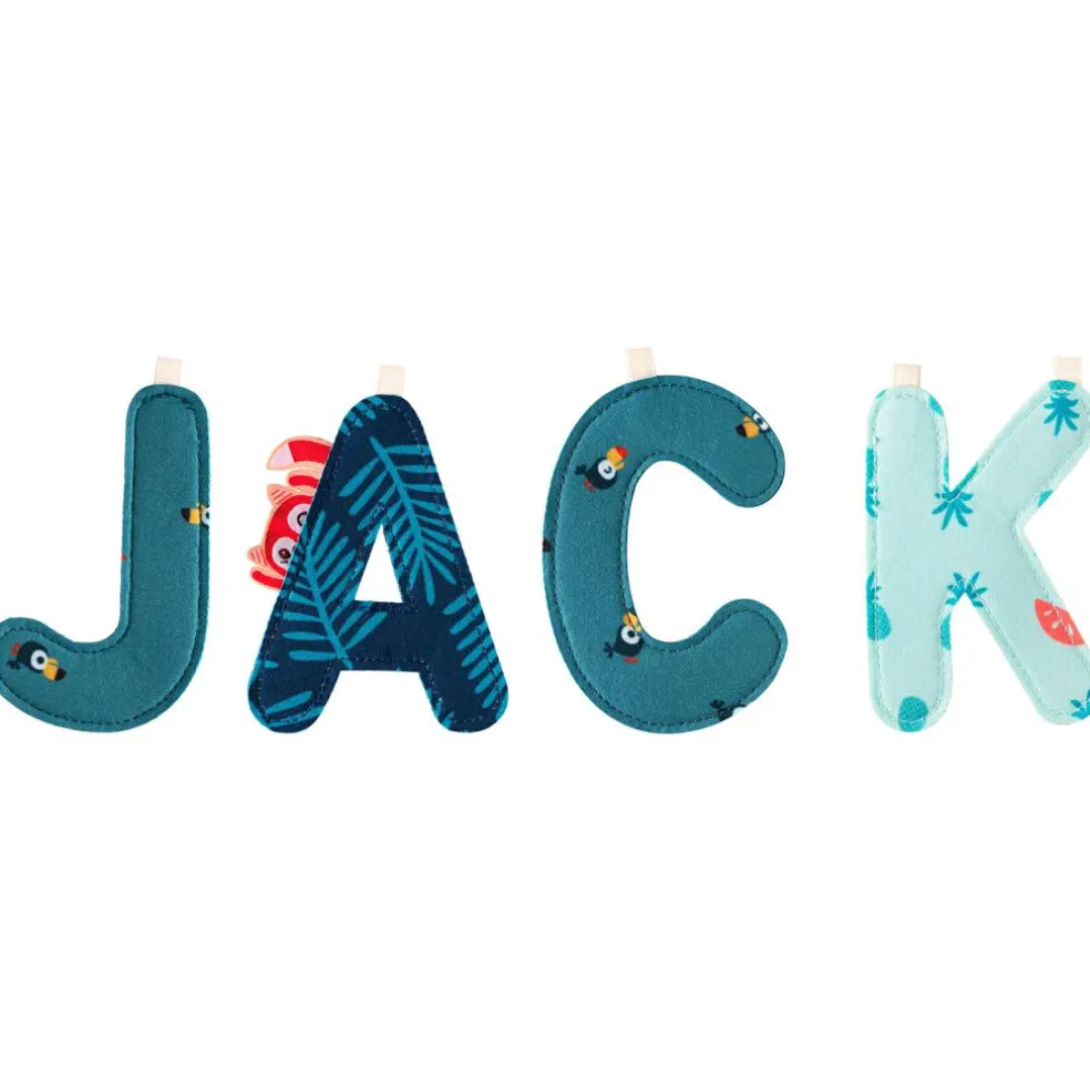 La lettre en tissu à suspendre de la marque Lilliputiens permet de créer une belle décoration murale en épelant le prénom de votre enfant ou un mot qui lui tient à coeur.
