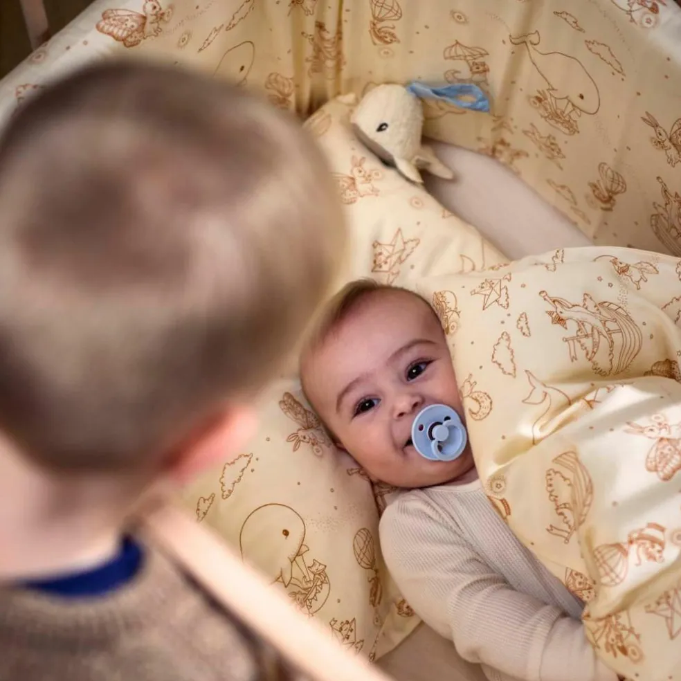 Après une journée riche en découvertes, rien de tel qu’un doux rituel du coucher : une histoire, un câlin… et le confort rassurant de ce linge de lit en coton biologique. Tissé en satin pour un toucher incroyablement soyeux, il enveloppe les petits dormeurs dans une bulle de bien-être et les accompagne vers de jolis rêves.