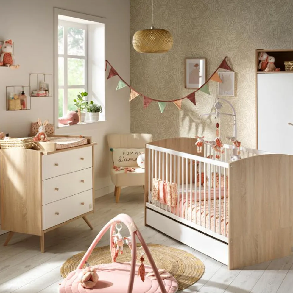 – Retirer les barreaux de lit de chaque côté pour obtenir un lit de grand.
