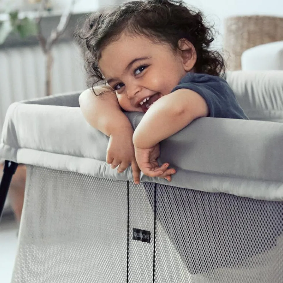 Le lit parapluie Light gris de la marque BabyBjörn est un lit d’appoint confortable à utiliser aussi bien à la maison que chez des amis, ou encore en voyage.