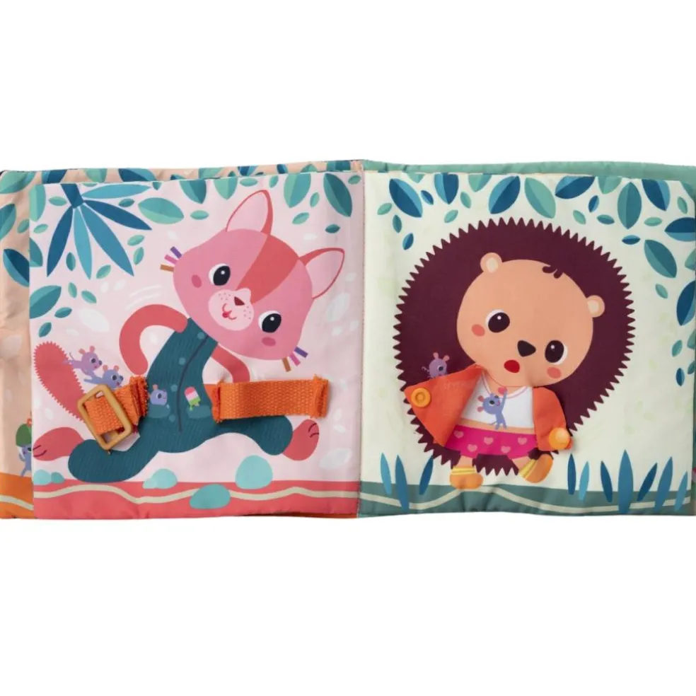 – Chaque page comporte un élément de vêtement (fermeture éclair, bouton, lacet, etc.).