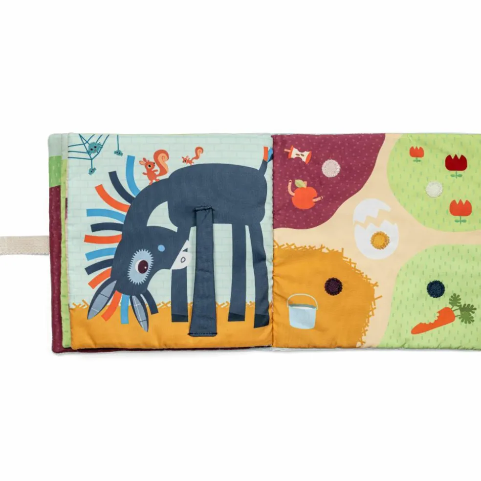 – Une pochette de rangement sur la couverture permet de glisser tous les bébés animaux au début de l’histoire.