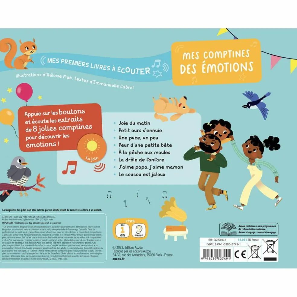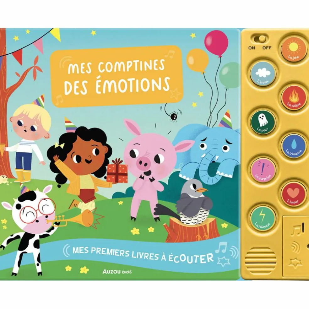 – Appuie sur les 8 boutons et écouter les extraits de 8 jolies comptines sur le thème des émotions.
