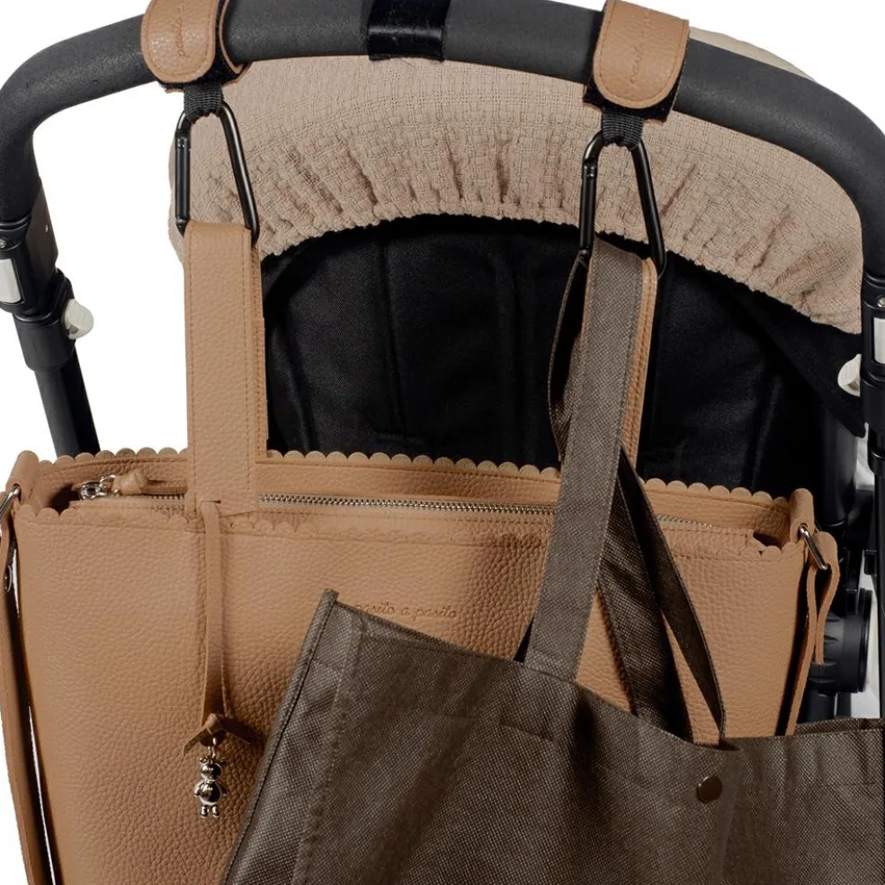 – Lot de 2 crochets pour poussette Icon Caramel en similicuir.
