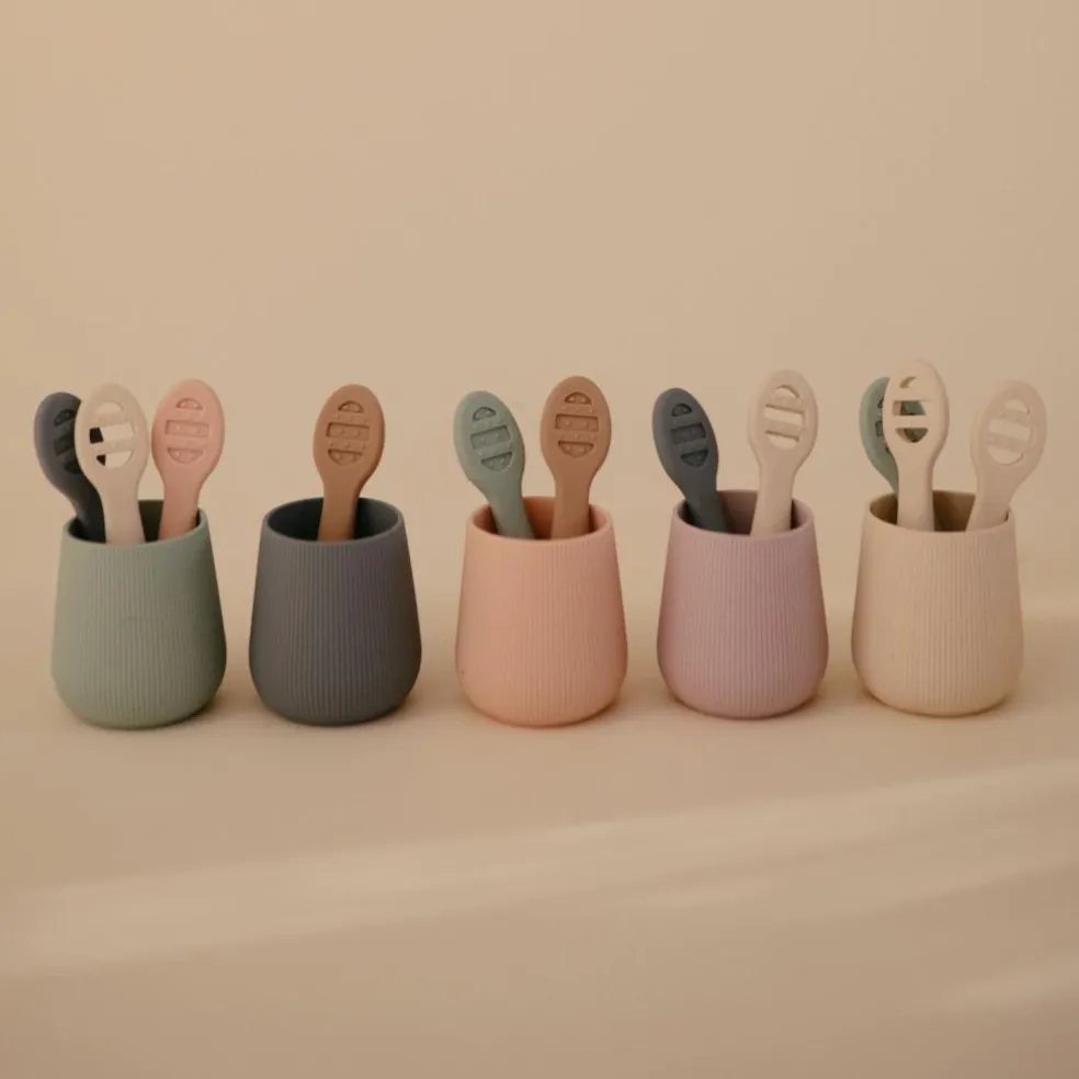 Un essentiel pour les repas en autonomie : Jolies, sûres et pratiques, ces cuillères Mushie rendent chaque repas plus simple et plus agréable pour bébé.