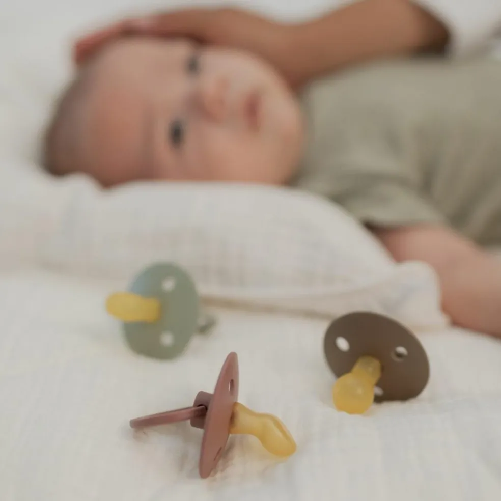 La tétine anatomique est conçue pour qu’elle puisse se loger naturellement dans le palais du bébé et permettre à ce dernier de placer facilement sa langue. Son embout courbé incite le bébé à placer sa langue et à téter de la même façon qu’il le ferait au sein, c’est-à-dire à enrouler sa langue autour de la tétine, comme il le ferait, autour du mamelon, lors de l’allaitement au sein.