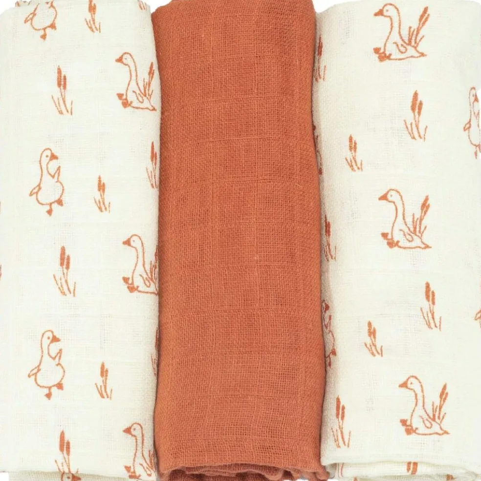 Lot de 3 langes en mousseline de coton Oies (70 x 70 cm)