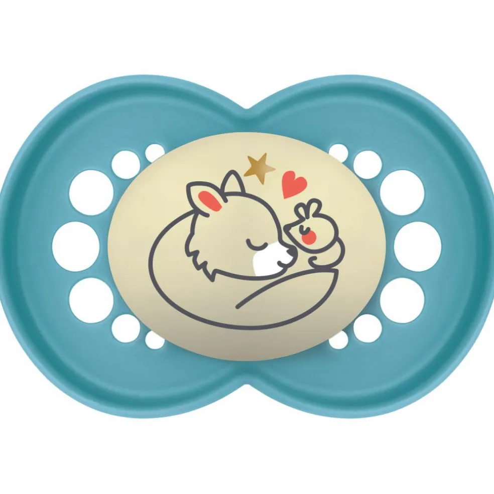 – La forme symétrique de sa téterelle permet à la sucette d’être toujours bien positionnée, pour ne pas nuire au développement naturel de la bouche de bébé.
