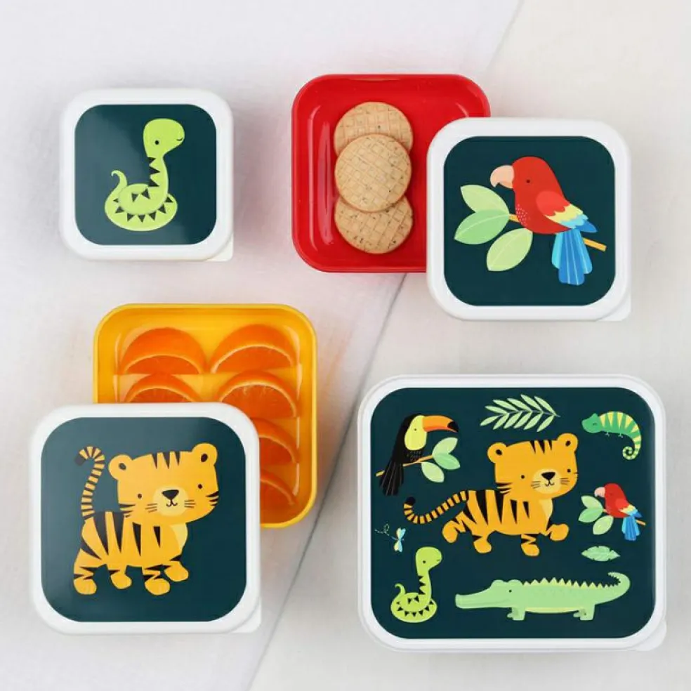 Ce lot de 4 boîtes à goûter Tigre de la marque A Little Lovely Company permet de ranger un encas facilement : des fruits, des crudités, des biscuits, des bonbons, des sandwichs…