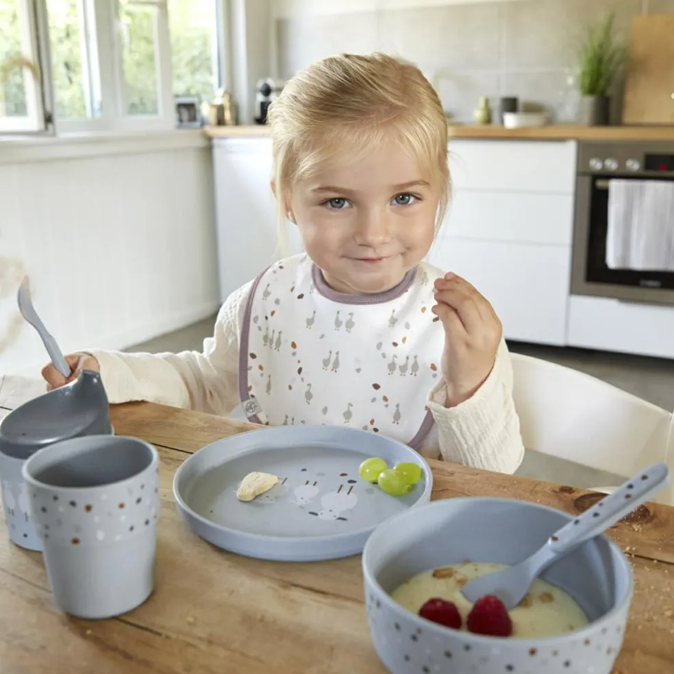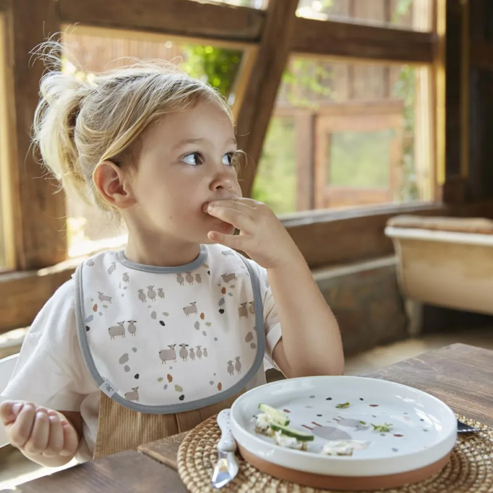 Le lot de 5 bavoirs en éponge Tiny Farmer Mouton bleu de la marque Lassïg protègera les vêtements de bébé pendant les repas.